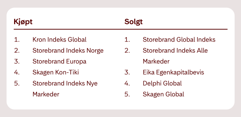 Hittil i år ser vi at indeksfond fortsatt er populært blant våre sparere. Dette er en trend vi har sett globalt over flere år. I år ser vi at spesielt Norge er populært, noe som henger sammen med den gode avkastningen. Med unntak av Kron Indeks Global ser vi samtidig at mange kvitter seg med globale fond. De har hatt en krevende start på året.